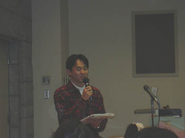 最後に、日本の大学生による自然保護活動ということで、F A Networkから、北海道での自然保護ワークキャンプ、NEC学生バードソン、谷津干潟の「ソロモンの指輪プロジェクト」の活動についての発表を行いました。韓国から来日したJoo教授や、FAに関わっていない学生達に、FAの活動を知ってもらえる良い機会となったと思います。