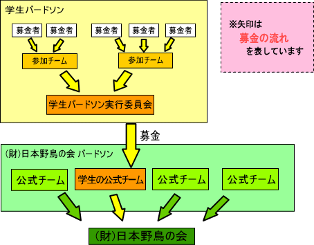 尚、学生バードソンで集まった募金は、すべて学生の公式チームに集約し、学生の力をアピールしようと試みました。 |