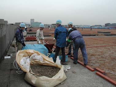 そのような状況下、コアジサシが巣を作れる環境を人の手で整備しよう! という試みが始まったのです。コアジサシ保全のために立ち上げられた自然保護団体『リトルターン・プロジェクト』と市民、行政との協働により、森ヶ崎水処理センターの屋上に人工的に営巣地を整備する計画が始まりました >そして2002春、『リトルターン・プロジェクト』代表の増田氏を中心に、のべ200人のボランティアの協力によって整備作業が実施され、約2ヘクタールの営巣地が完成したのです 。