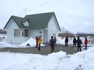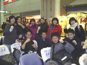 | いざ出発! 羽田空港に集まった参加者たち! | ワークキャンプ中の宿泊施設「ファームイン鶴居」 |