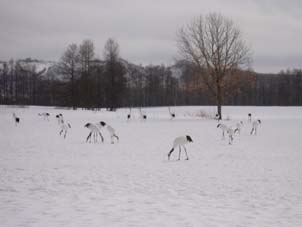 | タンチョウの環境教育プログラムをやっているところ | こんな感じでタンチョウが給餌場に集まっている! |