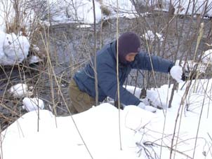 タンチョウの好むヨシ原にハンノキが繁茂すると、タンチョウが営巣しなくなります。鶴居・伊藤タンチョウサンクチュアリでは、1999年からタンチョウの生息環境であるヨシ原の復元のためのハンノキ伐採実験を行っていて、ワークキャンプで毎年お手伝いをさせていただいています。昨年、とうとう伐採地でタンチョウがひとつがいが営巣しました!!今回は最後の年として切り残しを伐採する予定でしたが、天候に恵まれず、中止に。残念でしたが、レンジャーさんの御好意で、現場まで連れて行っていただきました。スノーシューで雪の湿原を歩いて行き、ハンノキの萌芽の切り取りも行うことが出来ました。作業後、これまでの作業の成功を祝い、また、皆でタンチョウを想って黙祷しました。●野外セミナー
