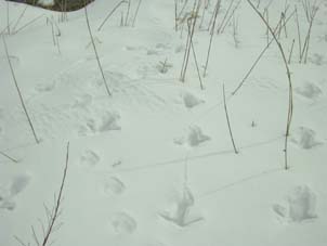 昨年までに復元した場所に、タンチョウたちの足跡 がある。 |