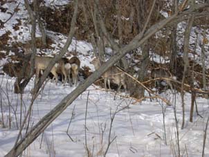 | 伐採地での作業の後で、みんなで記念撮影! | 野外セミナーの途中で観察できたエゾシカの群! |
