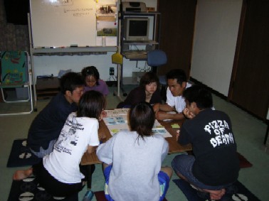 | 看板たて。 | セミナー中。みんなで意見をまとめます。 |