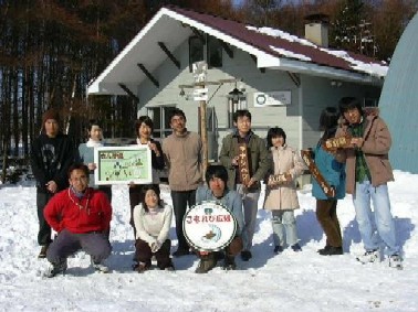 | 5.この丘からはキナシベツ湿原が一望できます♪ | 6.氷点下の中での看板作り。寒いけど、頑張るぞ−! |