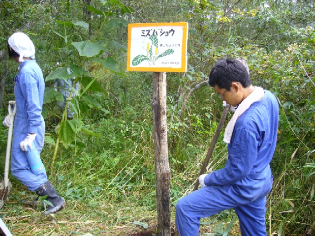 一日 木道沿いの看板立て・木道作製