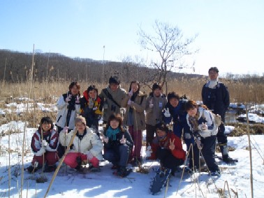 | 5.野外セミナーで行った早瀬野鳥保護区温根内。雪の下から フッキソウなど植物が見れ、春の訪れを感じることが出来ました♪ |
