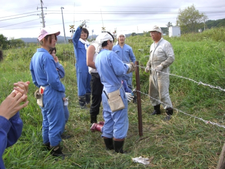 1.町道沿いのバラ線張り(有刺鉄線による湿原への進入防止柵の設置) ハンターや釣り人などの湿原へ侵入を防ぐための、 国道から海岸までつながる町道沿いに進入防止柵を設置しています。 これまで行われてきたワークキャンプで継続して行われてきた事業ですが、 今年でやっと海岸から町道沿いのバラ線を張り終えることができました。