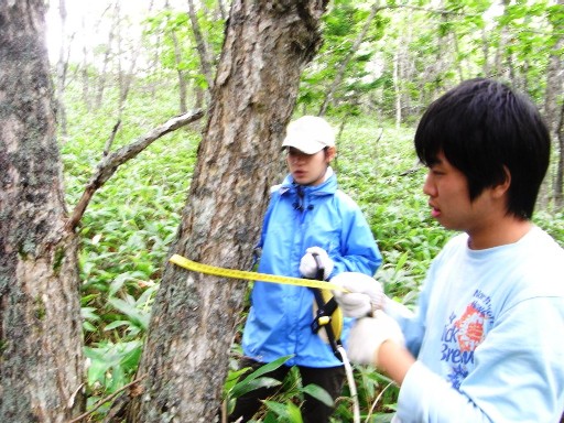 シマフクロウの棲める森作りのため、ミズナラが5〜8本、萌芽している木を3本ほどにノコギリで切りました。その際にすべての木の大きさも計測しました。 |