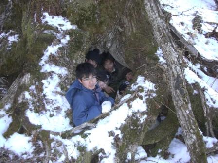 キナシベツには北海道で唯一原生林が残されている場所で一般的に見られる二次林とは違い、深みのある森でした。巨木が倒れそこにコケが生えていたり、人が六人入れる穴が開いる巨木があったりと数々の始めてみる景色に感動ばかりしていました。ヤマブドウトという物も初めて見ました。