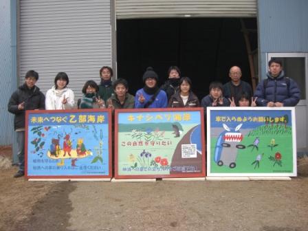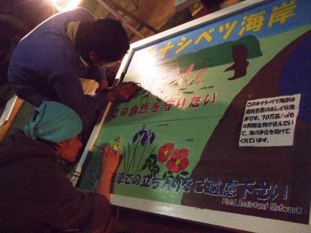 場所は、乙部海岸・尺別海岸・キナシベツ海岸の3箇所です。120×90センチという、とても大きな看板でした。