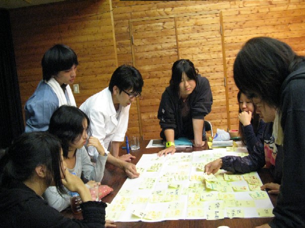 ワークキャンプで新たに学んだこと含め、たくさんある自然保護の方法を分類することで「自然保護とは何か」ということを全員で学習することができました。 |