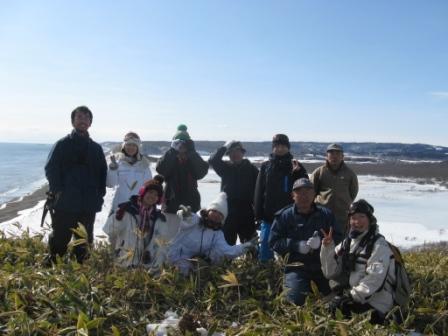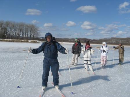 歩くスキーを履いてキナシベツ自然保護地区を一周しました。凍っている川や、夏には入れない湿原、キナシベツを一望できる岬、原生林等を榊原さんの説明のもと1日かけて体感しました。 |