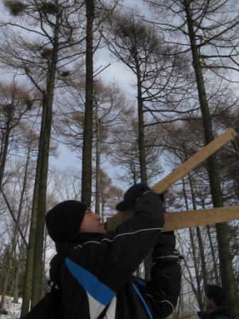 Aその木の、直径・健全度・巣のアルorナシ・巣のある高さ・巣の直径を計測します。