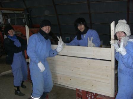 午前:看板作製(木材組立)