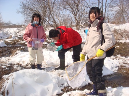 予定した3か所のうち1か所は、前日の吹雪の影響で生き物を採取することができませんでした。