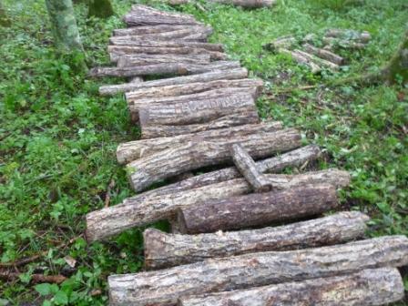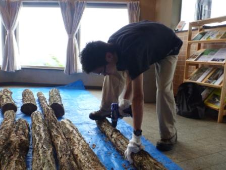 除間伐材の利用の一貫としてきのこが生えるようなほだ木を作りました。 |