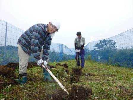 今回のワークキャンプでは植生回復のために粘土層の土地の修繕を行なってきました。 |