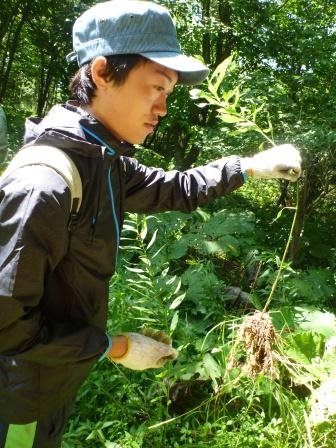 午前:オオアワダチソウの抑制管理作業への参加