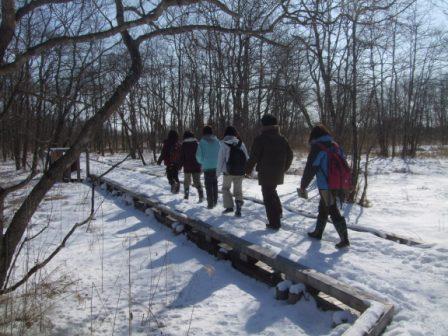 受入先のレンジャーの方々からタンチョウとそれを取り巻く環境や問題点について、実際の現場(鶴居村内と釧路湿原)に車で向かい、教えて戴きました。
