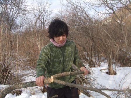 しかし、夏の整備作業から時間が経ち枝が折れるなど狭くなった場所や、さらに整備することでタンチョウの利用が期待できそうな場所があるので、水路の周辺に生えている木の枝をのこぎりを使い除去して、タンチョウがより利用やすい自然採食地を作りました。 |