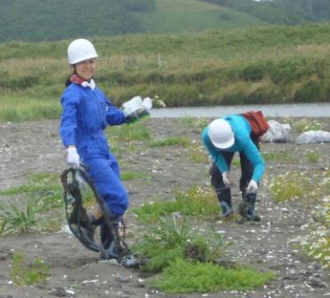 保護区内の湿原には、東日本大震災の津波や高波によりゴミが漂着しています。今回は湿原部分がタンチョウの繁殖区域でもあることから、生息環境の改善をするために湿原のゴミ拾いを行いました。 |