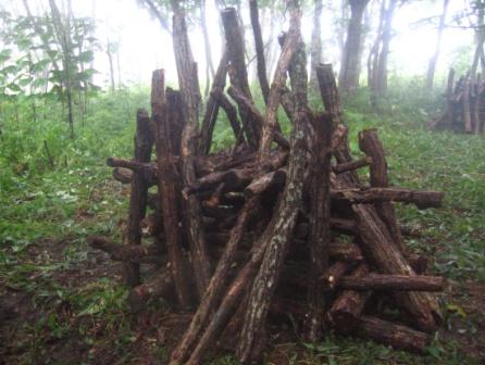 冬場に餌となるネズミ類を見つけやすい環境を作るために、森林内にネズミの隠れ家を作ります。今回はどのような形状が有効か検証するための準備として隠れ家を作りました。 |